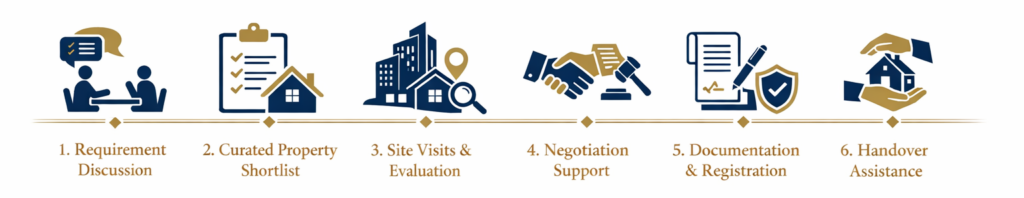 We offer transparent, reliable, and personalized support—from property discovery to documentation and possession.